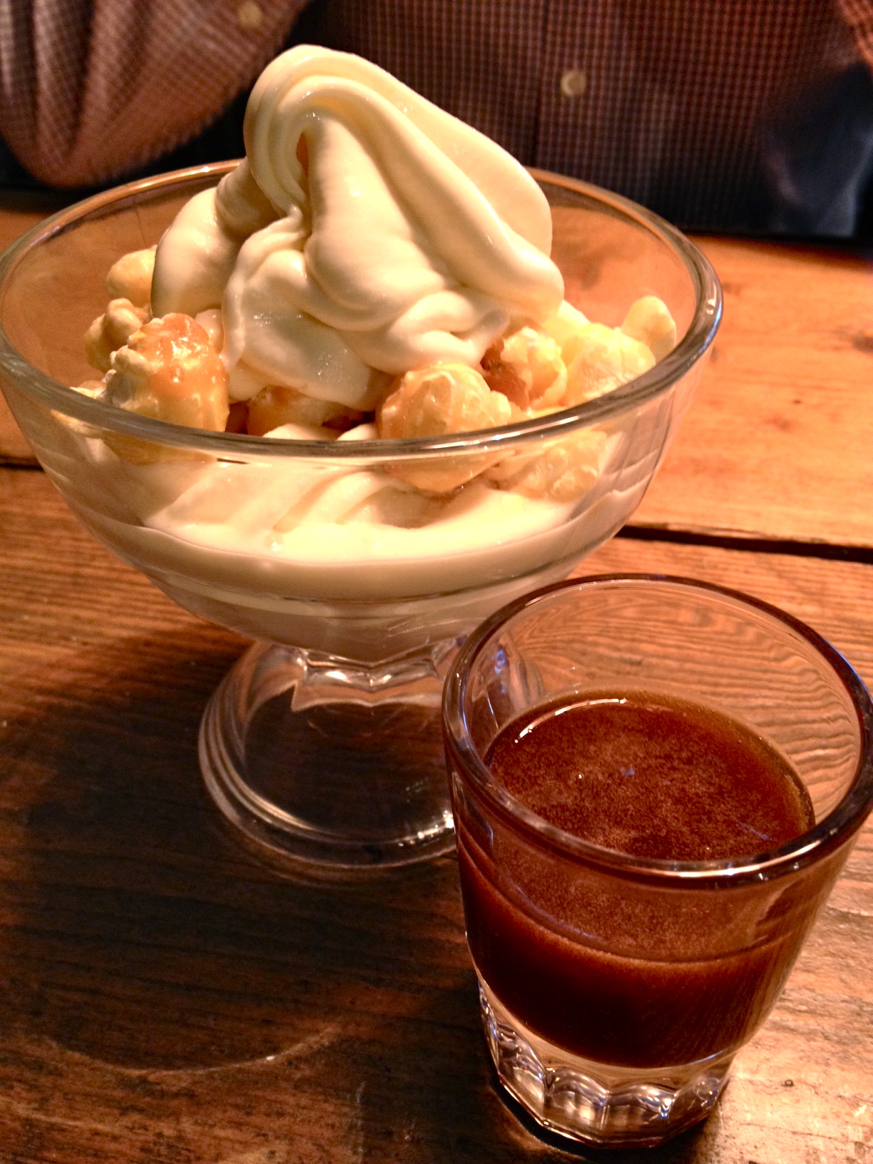 Yet, when it worked it really did have that element of style and surprise that I had so wanted everything to have. The corn on the cob was served in butter flavoured with meadowsweet. I have to admit this is my first experience of that particular herb and it was almost medicinal but definitely added a contrast to the sweet buttery corn. And the crispy chicken wings were fab with a great hit of citrus coming through. By far my favourite thing was the smoked fudge sauce that came with the popcorn ice cream. Personally I could take or leave the ice cream but that sauce alone restored my faith in the whole place. It was just immaculate. And absolutely what I had wanted to get from this talented team.